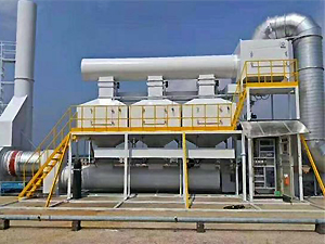 通过前面的预处理后,废气通入后端的活性炭吸附/脱附塔进行吸附处理,通过活性炭微孔的有机气体吸附在活性炭表面,去除废气中的有机物,抵达净化气体的作用。